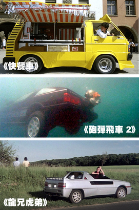 三菱汽車與成龍電影 銀幕上除了英倫占士邦與 Aston Martin 外,影星與車廠關係維持得最長久的莫如成龍與三菱汽車。 成龍先於 1984 在自資拍攝的《快餐車》中駕駛一部鮮黄色的 Delica Star Wagon 麵包車横掃西班牙街頭,之後同年在好萊塢電影《砲彈飛車 2》中跟身高 7 呎 2 吋的鋼牙 Richard Kiel(今回做正派)拍檔,駕駛一輛能跳傘和潛水之海陸空全能 Starion 跑車參加搞笑賽車。而在 1987 年《龍兄虎弟 》中,成龍又再次用上特別改裝的三菱汽車 - 開篷雙座 Mirage。 至於最多三菱車輛出鏡的成龍電影要算 1995 年之《霹靂火》,出場的包括 3000 GT、FTO 跑車及 HSR 概念跑車等多達 26 款三菱汽車。而到了 1998 年,成龍在南非拍攝《我是誰》時, EVO 4 及 Pajero 就成為雙龍出海的越野賽車主角。這跟在翌年放映的《玻璃樽》中兩部滑稽概念車 Field Guard 和 MAUS 造成強烈對比。 |