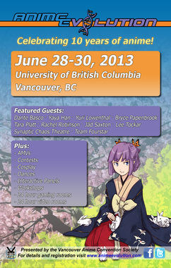 由加拿大中文電台贊助的「溫哥華動漫節 Anime Evolution」將於 6 月 28 至 30 日在 UBC 隆重舉行,今年動漫節以「Celebrating 10 Years of Anime Conventions」為題,回顧這個流行文化展的十年光輝歲月,並一睹最先進的動畫科技和漫畫藝術。同場更有 cosplay 比賽、專題工作坊和幕後英雄見面會。如果你是夜貓子,這裡更有 24 小時的遊戲機設備。(註:十八歲以下的青少年須帶同家長同意書;十二歲以下兒童須由成人陪同;通宵活動只限成人。)查詢詳情,請瀏覽 www.animeevolution.com。