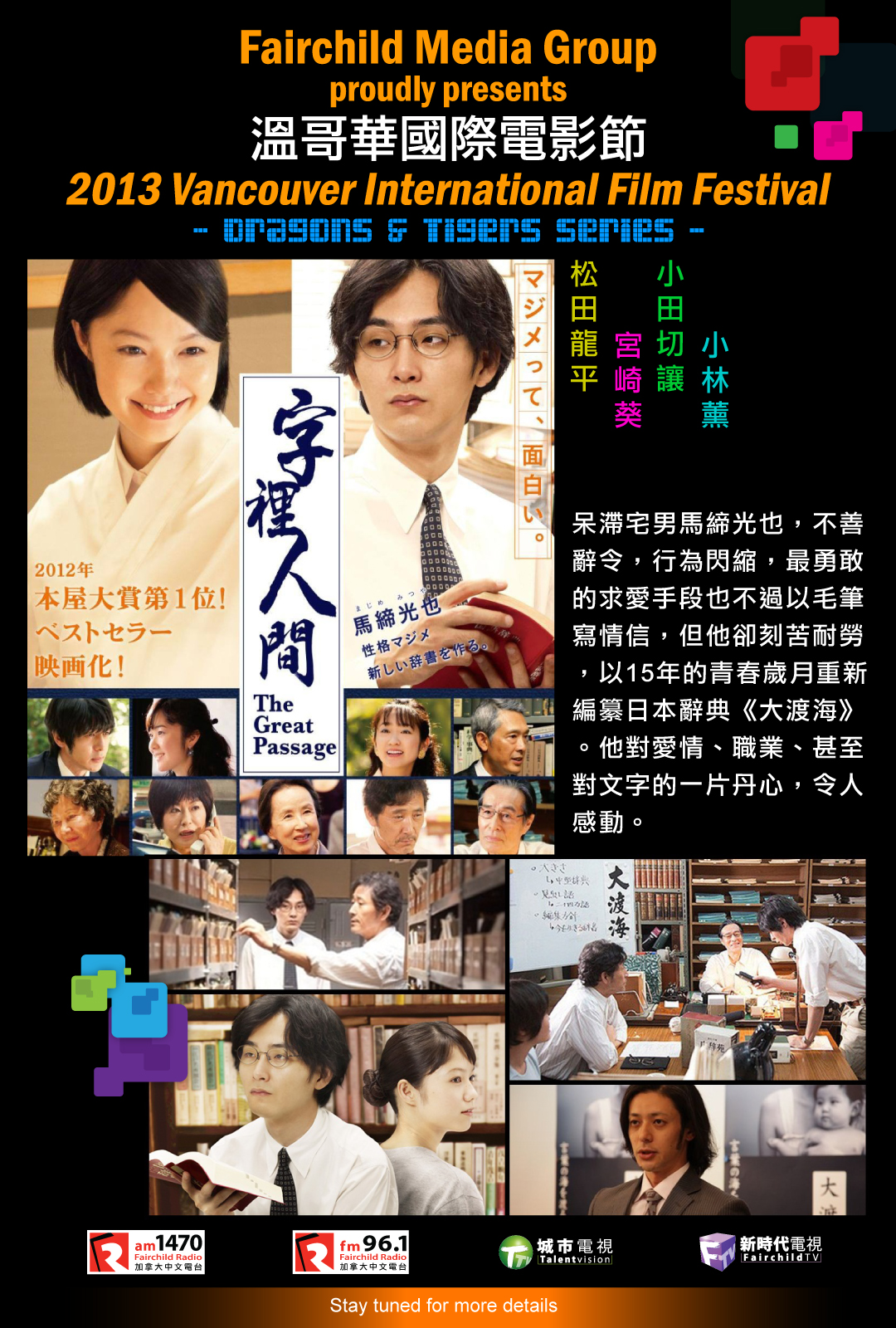 Fairchild Media Group proudly presents 2013 Vancouver international Fim Festival (VIFF) Dragons & Tigers Series which is internationally recognized as one of the most significant exhibition of Pacific Asian films outside Asia. In the coming weeks, AM1470 & FM96.1 are going to giveaway VIFF movie admission tickets of award-winning films from Hong Kong, China, Taiwan and Japan. Stay tuned for more details. Click here to log onto the VIFF official website.