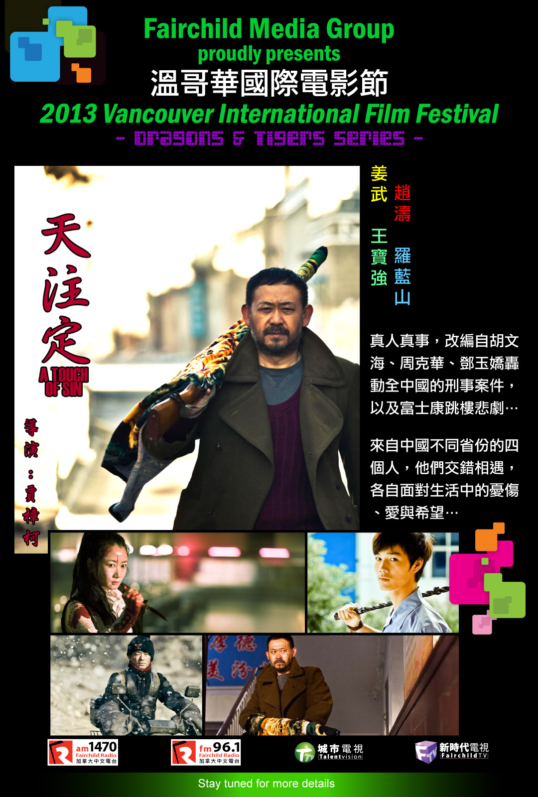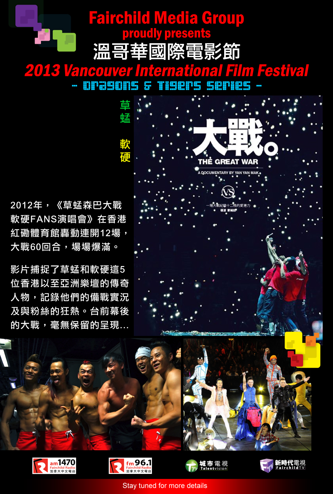 溫哥華國際電影節是北美五大電影節之一,電影節不乏名家大作,同時也是電影新人嶄露頭角的舞台,今年新時代傳媒集團榮譽呈獻以華語電影為賣點的 Dragons & Tigers Series (龍虎系列) ,把參與溫哥華國際電影節的範圍擴大,同時亦傾力推介來自全球各地不同題材的電影。今年參展的影片的共 340 部,來自 70 個國家,而當中的華語展片陣容特別強大。