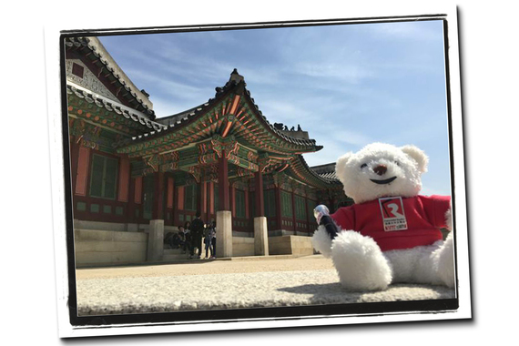 四日三夜之旅也不是只有吃,我們也暢遊首爾的名勝。到埗第二天陽光普照,我們遊覽了昌德宮,特別吩咐 Fairchild Bear Bear 熊站在宮門外擺好姿勢讓我拍照,1 2 3 Kimchiiii!不要小看 Fairchild Bear Bear 熊,他隨時帶備私家咪,是當紅 DJ。