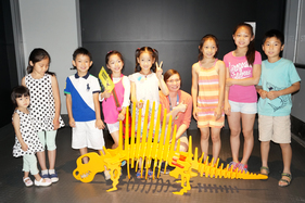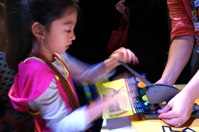 在展館學到了很多有關恐龍的知識,解說員 Rhoda 說要考考各位小朋友,拿出一副恐龍骨的 puzzle,請大家動手將它砌成原形。你別說,要不是 Rhoda 從旁提點,還真不容易呢。