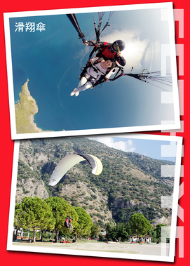 至於 Fethiye 這個小鎮,最著名的就是滑翔傘,韓國版和中國版的「花樣姐姐」都來過這裡拍攝。滑翔傘跟跳降傘不同,它不是從天空往下跳,而是從高山上往下跑,跑幾步之後滑翔傘會乘著風勢自動打開並在空中飛翔,感覺真的像小鳥。在半空 pilot 還會用 selfie stick 替我們自拍,你看我還能看著鏡頭擺甫就知道這個滑翔傘飛得多穩。
