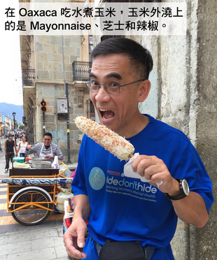 文楓和 Celina 參加的是一個墨西哥美食旅行團叫「Real Food Adventure – Mexico」, 9 天行程每人約 $2,000 加元 ,包酒店、導遊、國內交通和景點入場券等,但不包來回加拿大的機票和部份膳食。文楓解釋這些主題旅行團的團費可能稍為昂貴,但參加的團友都志同道合。「就像今次的美食團,一團只有 12 人,不會一大堆人趕鴨仔。團員來自澳洲、加拿大、美國和英國,老中青三代都有,雖然以女士居多,但都是對飲食文化有興趣的,不會吵著要 shopping。」其實文楓和 Celina 以前也去過墨西哥,但都是從美國開車過境即日來回,今次是從溫哥華乘飛機直達墨西哥首都 Mexico City,旅行團亦是從這裡開始,之後到幾個以美食聞名的城市包括 Puebla、Oaxaca 和 Mazunte。