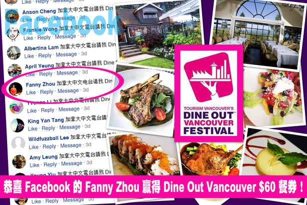 2018-01-13Social media game 加拿大中文電台 請我 Dine Out Vancouver!