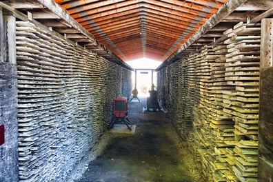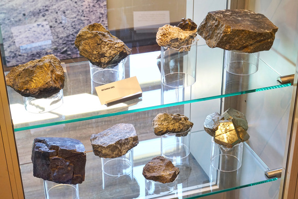 | hidden | ![]() Core Shed 內收藏的尋礦探土樣本。 | hidden | ![]() 這些樣本是從 Britannia 附近的巨石中鑽出深深的一節,以研究石中是否含有礦物。 |