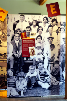 | hidden | ![]() 戶外展示場有石雕向礦業工人致敬。 | hidden | ![]() 曾有來自世界各地的六萬人住在 Britannia 礦區,或在此工作。 |