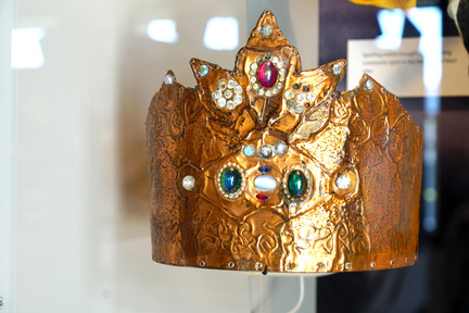 | hidden | ![]() 當年 Britannia Mine 運動比賽的「銅帝」寶冠。 | hidden | ![]() 地上畫有每組四名遊客之社交距離指引。 |