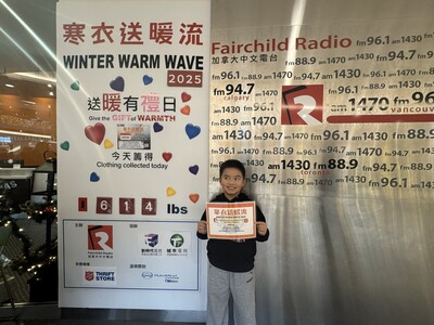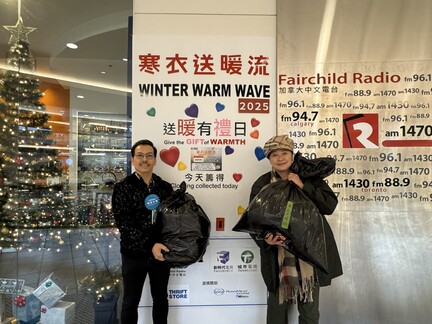 感謝大家的熱情支持!由加拿大中文電台主辦新時代電視、城市電視協辦,並與加拿大救世軍合作的「寒衣送暖流2025」捐衣大行動自 11 月 17 日啟動以來,得到市民的熱烈響應。「到你家收寒衣」服務方便大眾,讓年長者、行動不便或缺乏私人交通工具的朋友,也能在家輕鬆回饋社會。為了更方便市民,尤其是搭乘公共交通工具的朋友,加拿大中文電台今天在列治文時代坊舉辦了「送暖有禮日」,活動於中午 12 時至下午 4 時舉行。活動在短短 4 小時內成功籌得過千磅的捐贈物品,為寒冬帶來陣陣暖意。